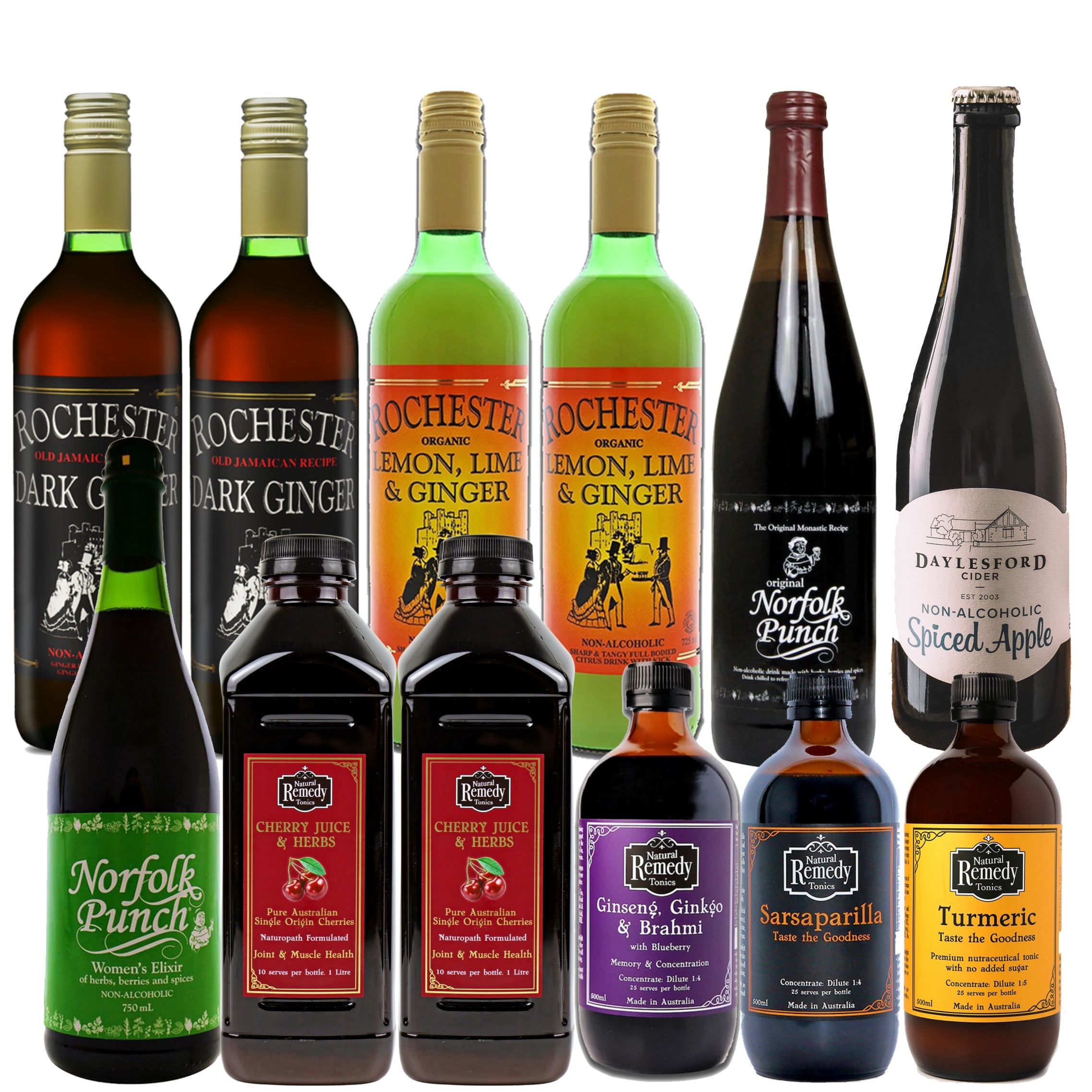 Our Bit of everything pack is perfect when you can't decide what you would like to order! With a combination of the entire range of Rochester Ginger and Natural Remedy Tonics you'll have no trouble deciding which is your favourite. The bit of everything pack includes: