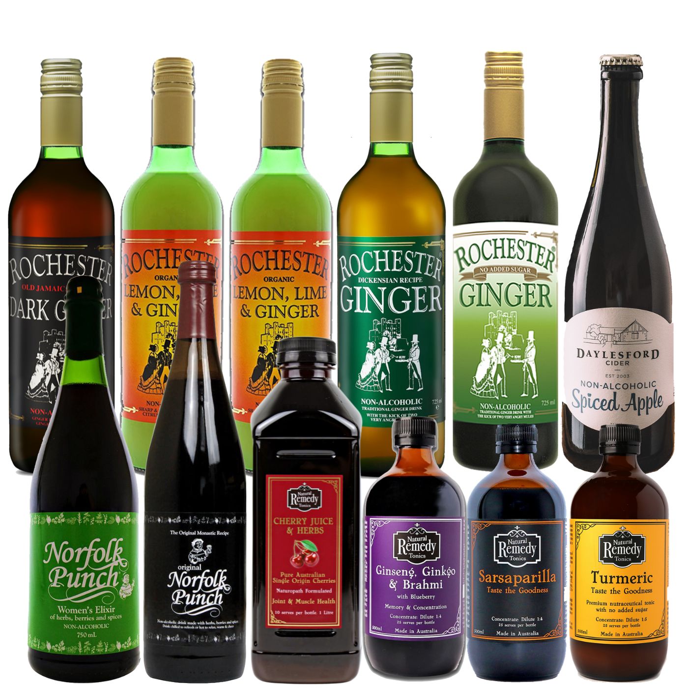Our Bit of everything pack is perfect when you can't decide what you would like to order! With a combination of the entire range of Rochester Ginger and Natural Remedy Tonics you'll have no trouble deciding which is your favourite. The bit of everything pack includes: